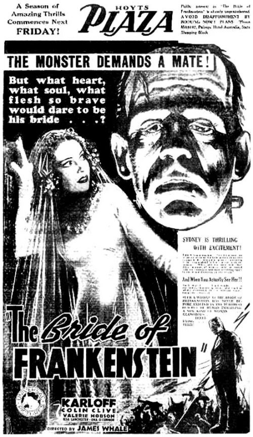 Universal was eager to capitalize on the enormous success of Frankenstein with a sequel. Below is an ad for an early idea. This eventually resulted in Bride of Frankenstein (1935).
