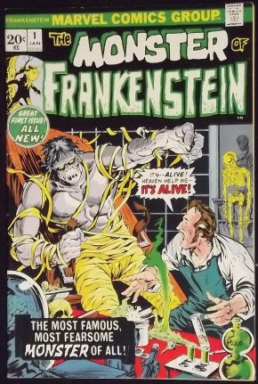 Below are two versions of the same cover for Monster of Frankenstein. The one at left is a little more extreme.